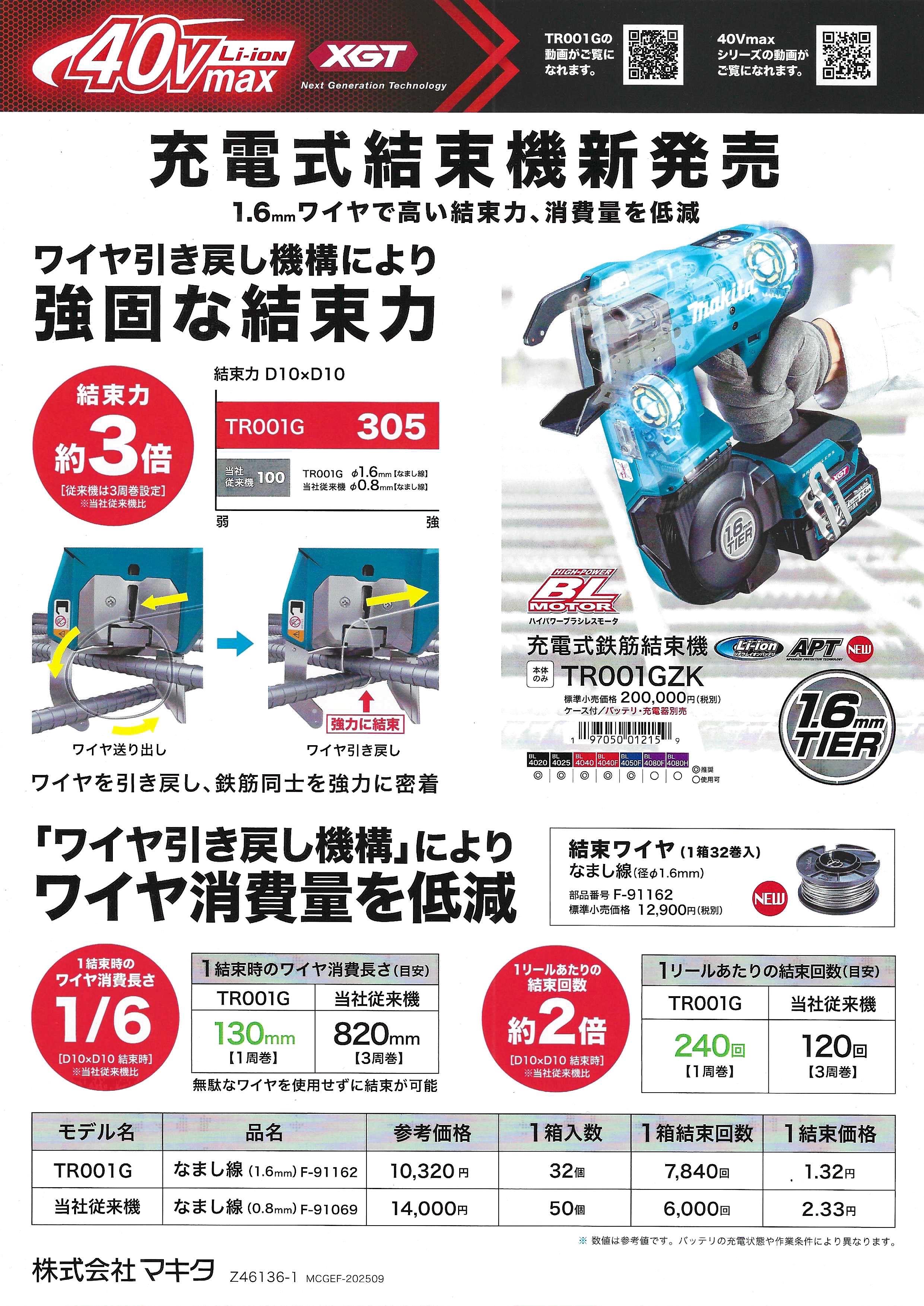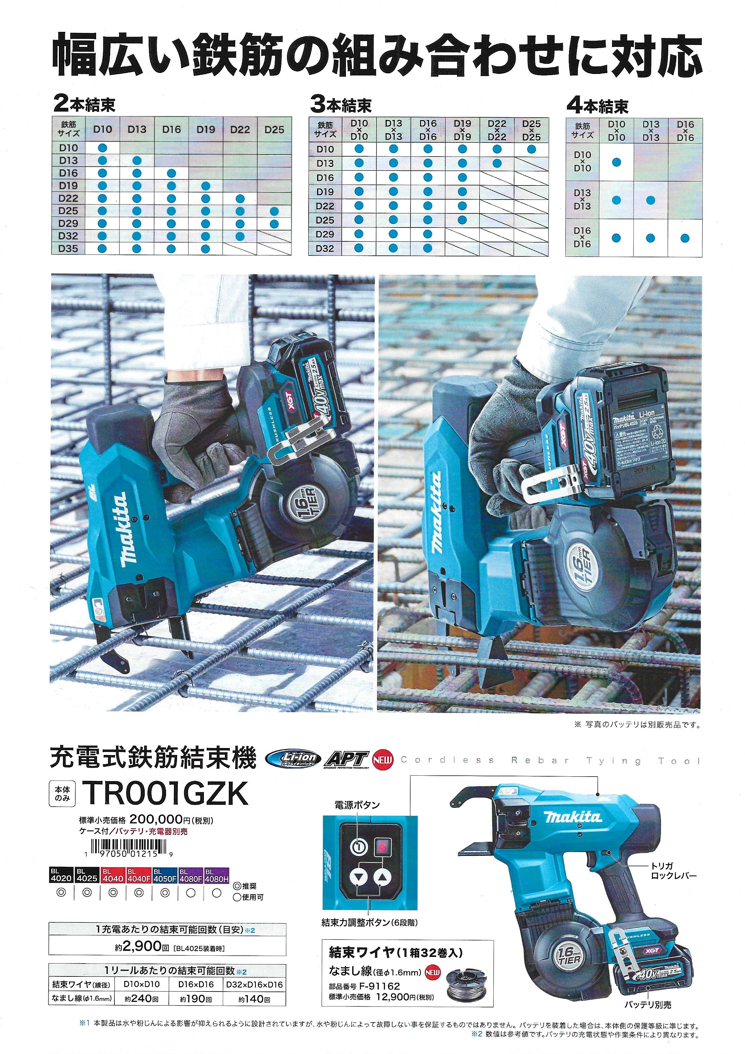 2025 年 9 月 10 日公開 マキタ 充電式鉄筋結束機 #新商品 #2025年9月 #マキタ マキタ 充電式鉄筋結束機 TR001GZK 1.6mmワイヤで高い結束力、消費量を低減 -「ワイヤ引き戻し機構」搭載で協力結束- 結束力約3倍 1結束時のワイヤ消費長さ1/6 詳しくは当店まで!!