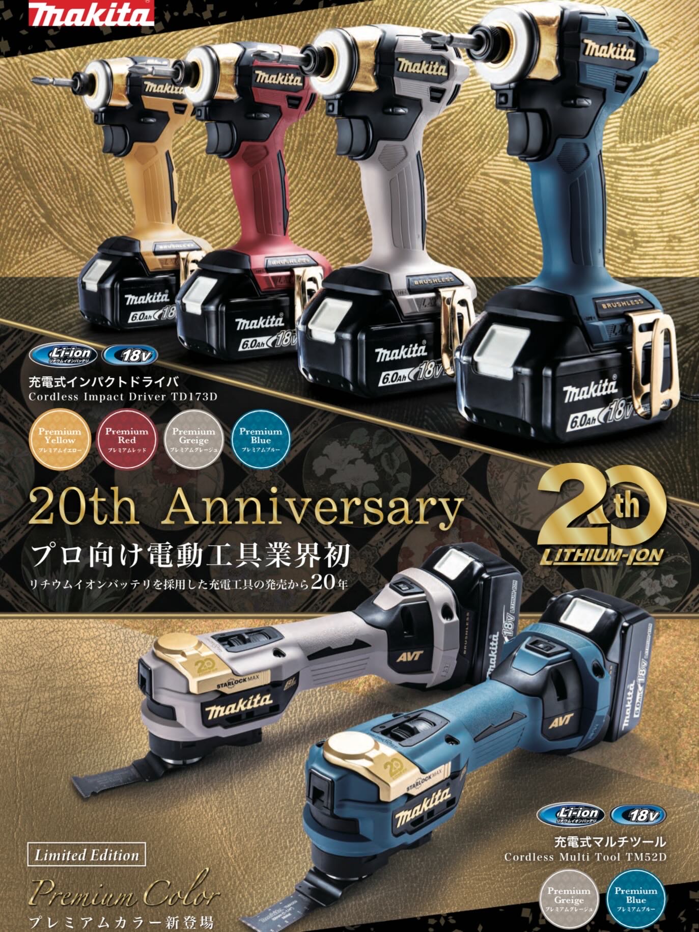 マキタの電動工具リチウムイオンバッテリー発売20周年を記念した